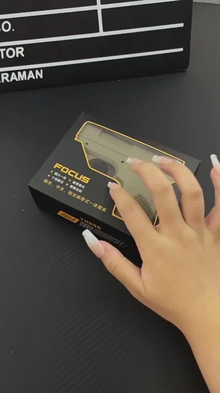 A bold blend of style and utility, this cigarette gun holder is designed for those who appreciate a rugged aesthetic paired with everyday practicality. Crafted to resemble a compact firearm silhouette, it securely stores your cigarettes while keeping them easily accessible. The built‑in refillable butane lighter sits seamlessly within the design, allowing you to light up with a simple flick—no need to carry a separate lighter.